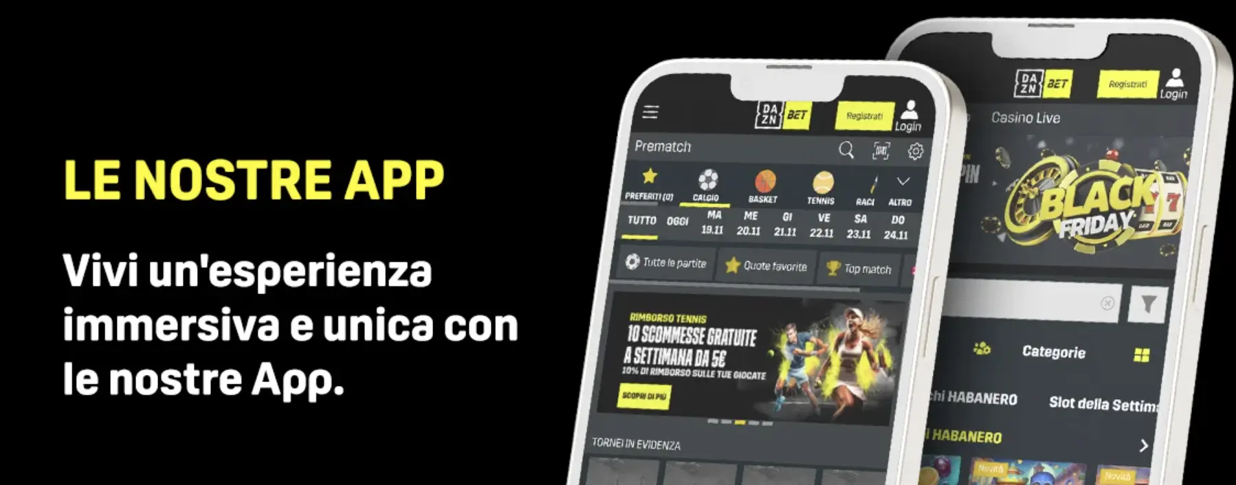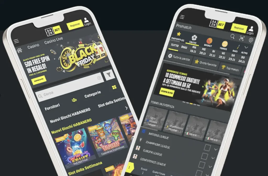 La nostra app DAZNBet opera in Italia tramite licenza ADM valida nel 2026 e riunisce scommesse sportive, casinò online, risultati in diretta e quote live aggiornate in pochi secondi. Gli iscritti al sito trovano al suo interno una miriade di sport oltre a centinaia di slot digitali e tavoli dal vivo.